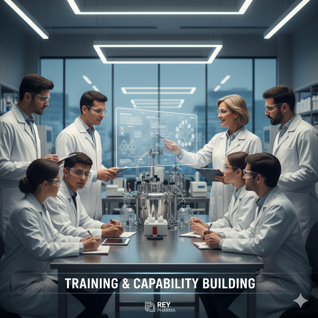 In the fast-paced pharmaceutical industry, continuous learning is crucial for maintaining a competitive edge and ensuring compliance. We offer specialized training and capability-building programs tailored for both industry professionals and academic institutions. Our curriculum is designed to bridge the gap between theoretical knowledge and practical application, covering a range of critical topics from cGMP (current Good Manufacturing Practices) and quality assurance to regulatory affairs and process optimization. For companies, this means upskilling your workforce to improve efficiency and reduce errors. For educational institutions, we provide hands-on training that prepares students for the real-world demands of the pharmaceutical sector, making them highly sought-after candidates. Our programs are led by seasoned experts who share their practical insights and real-world case studies, ensuring that every participant gains valuable, actionable knowledge that directly impacts their career and their organization’s success.